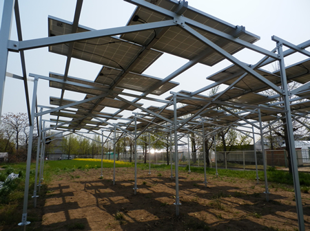 当社の架台はパネルの設置方法を自由に選択し、敷地に入る日射量を調整可能です。