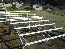 アルミ製W型架台とスクリュー杭との相性は抜群。さまざまなシーンで喜ばれております。