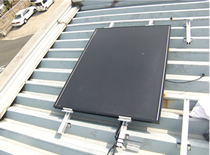 ブリッジ工法とは、雨漏りの心配な屋根との金具接続部分をすべて、太陽光パネルの下部に収める仕組み。この工法により、雨漏りの心配をなくしました。